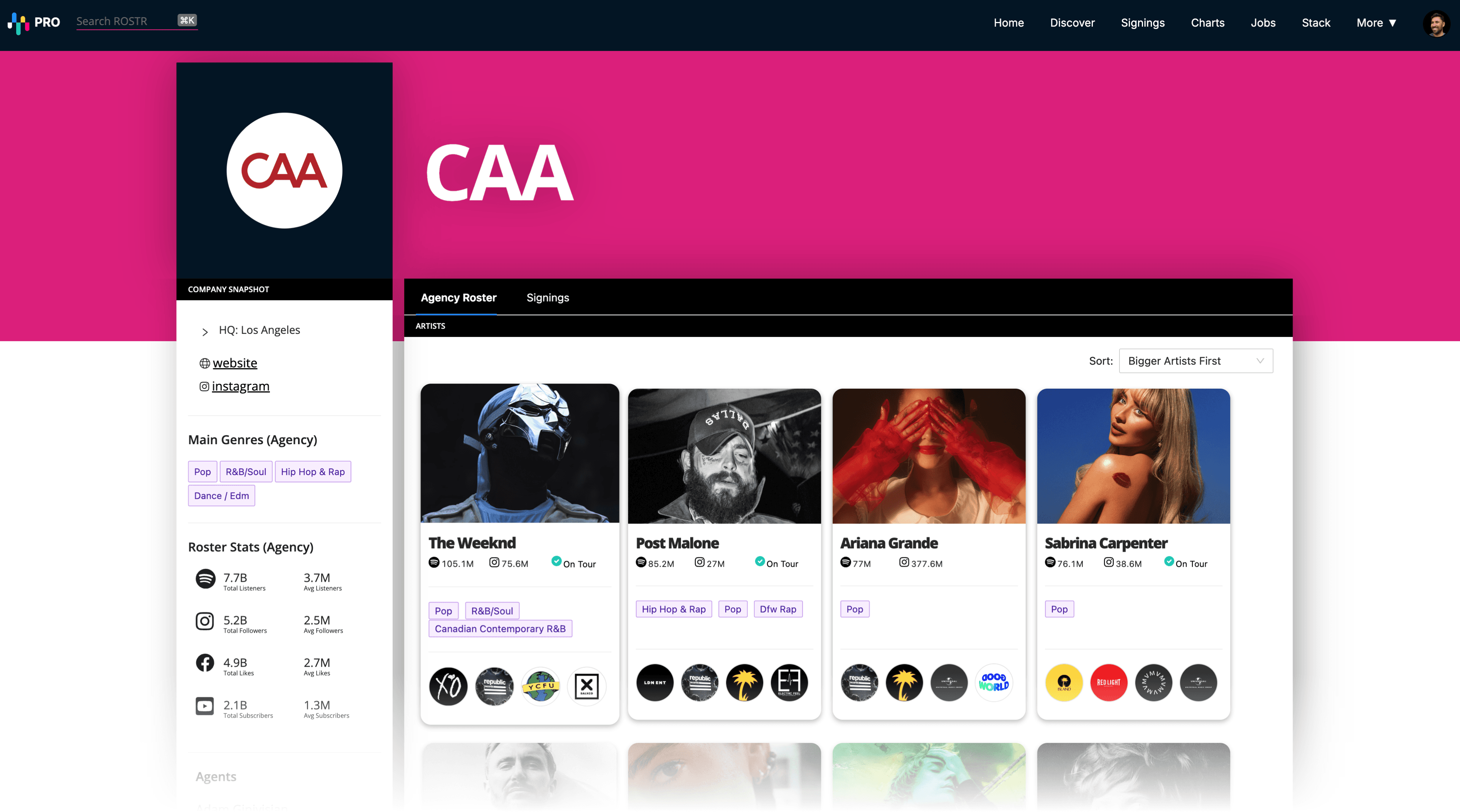 ROSTR makes life easier for tens of thousands of music industry professionals. Artist contacts, audience insights, company rosters, signings, tours, festivals, jobs and much more.