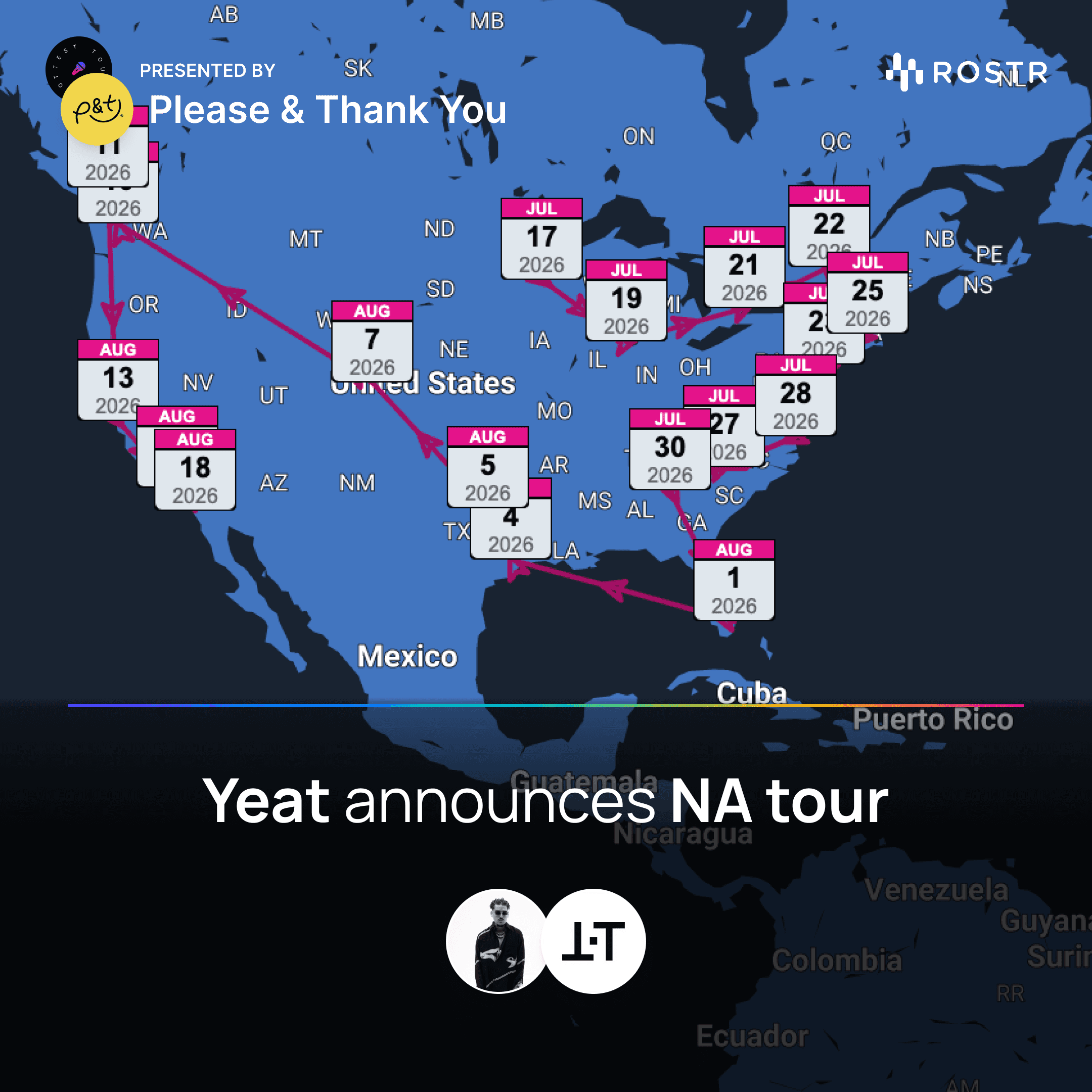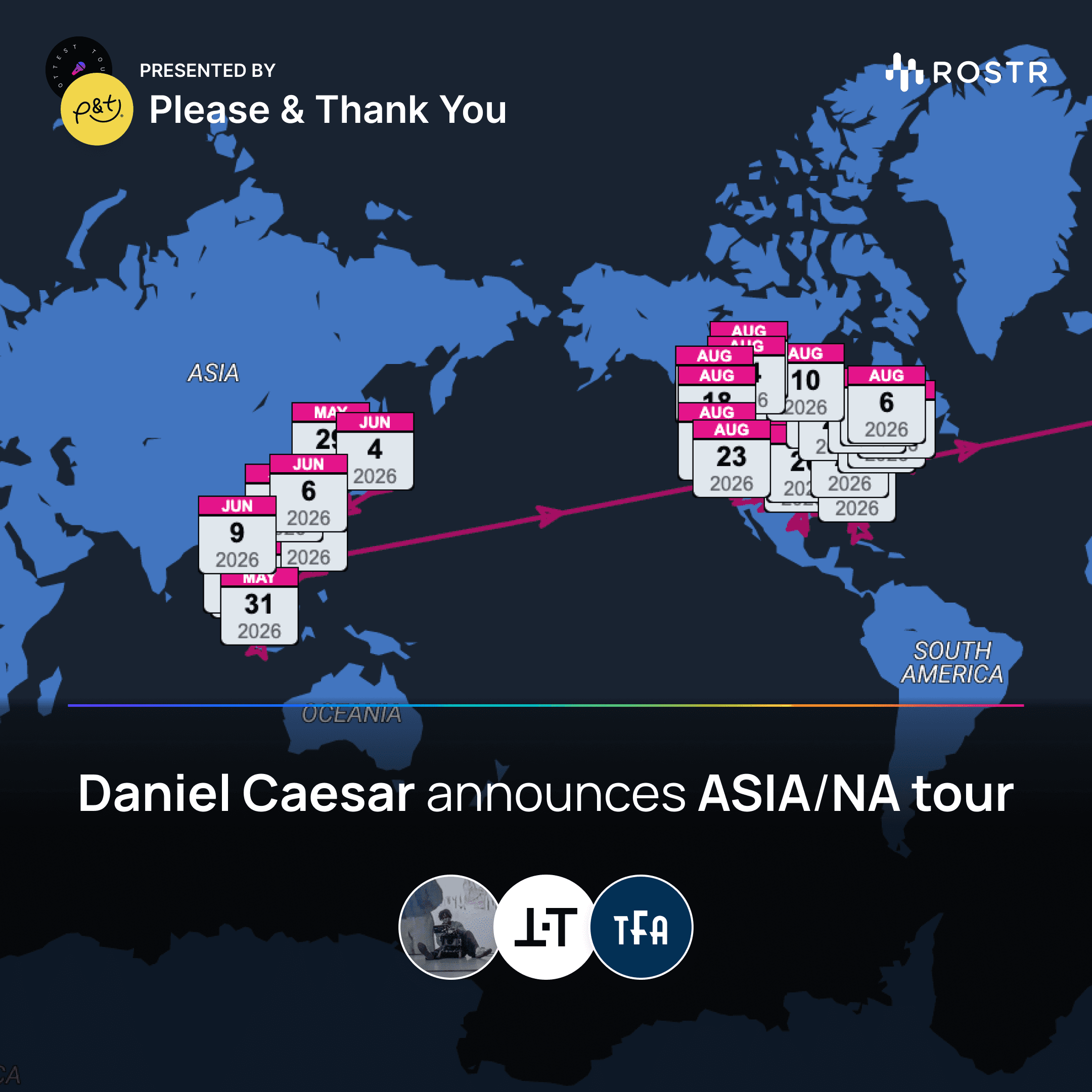 New tour announcements from Daniel Caesar, Jungle, Shakira, Yeat & Benson Boone