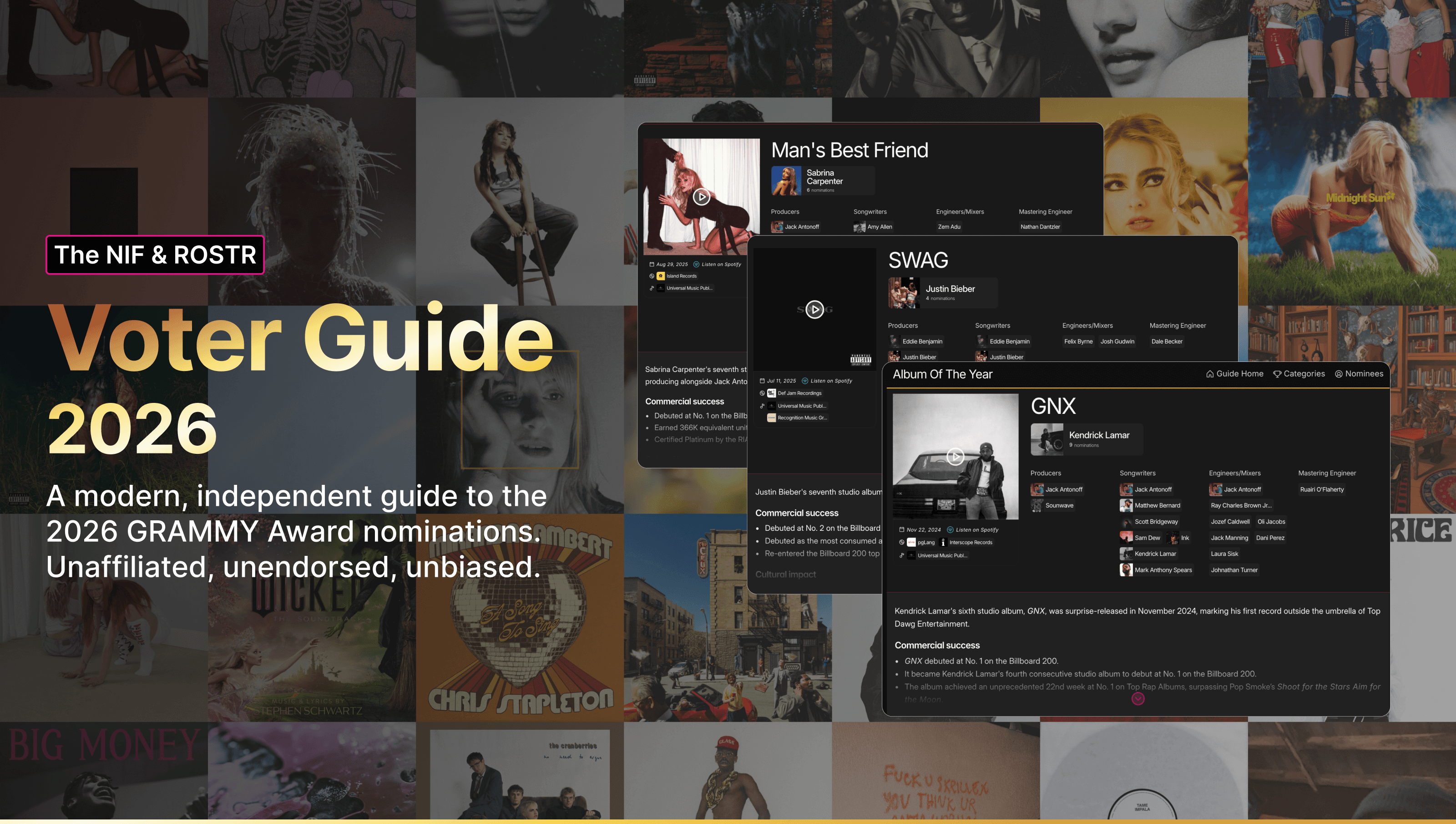 We're excited to share the first-ever edition of our free, independent Voter Guide to the 2026 GRAMMY Awards. Proudly unaffiliated, unendorsed & unbiased.