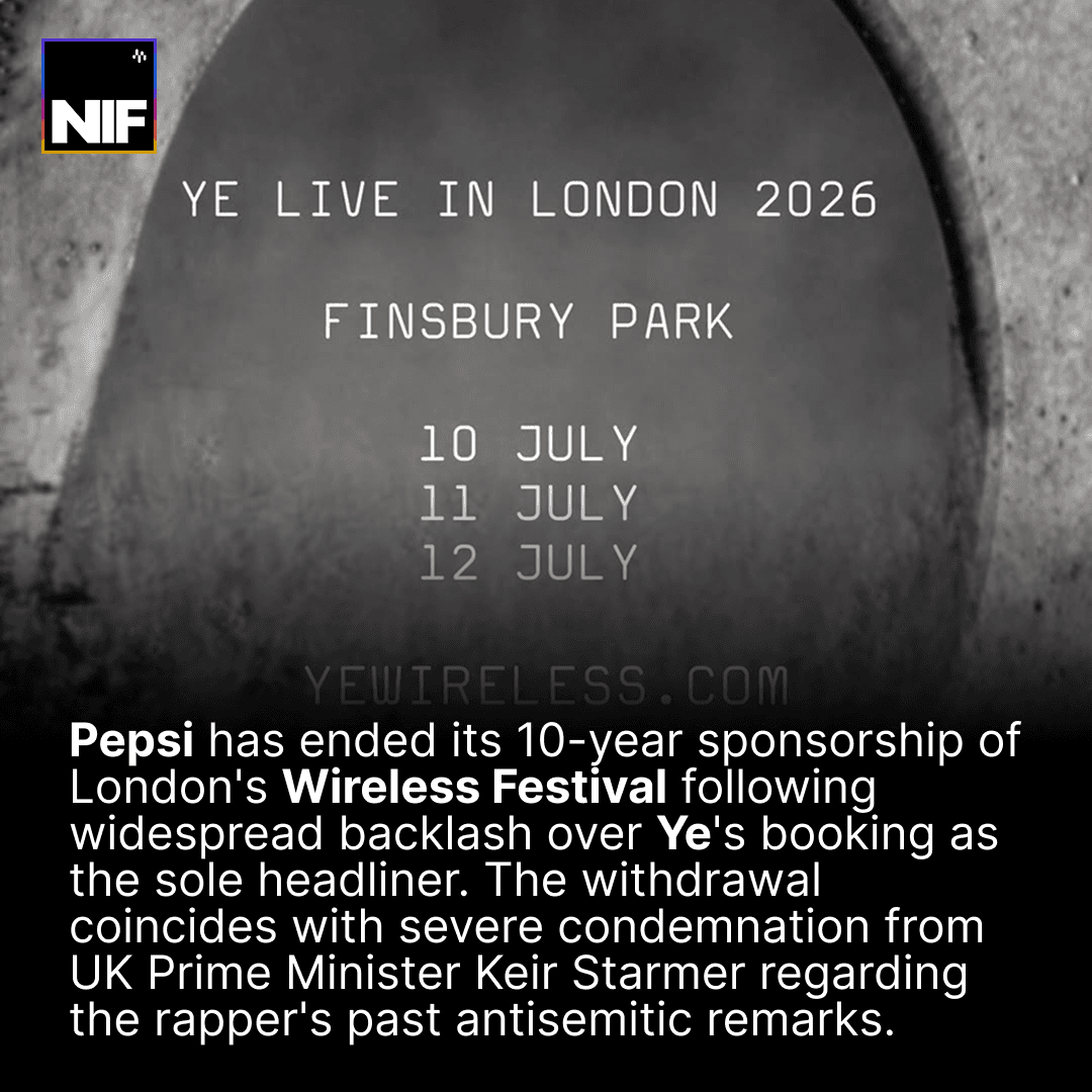 Pepsi has officially ended its 10-year sponsorship of London's Wireless Festival. The withdrawal follows intense public backlash and condemnation from UK Prime Minister Keir Starmer over the decision to book Ye as the three-day event's sole headliner.