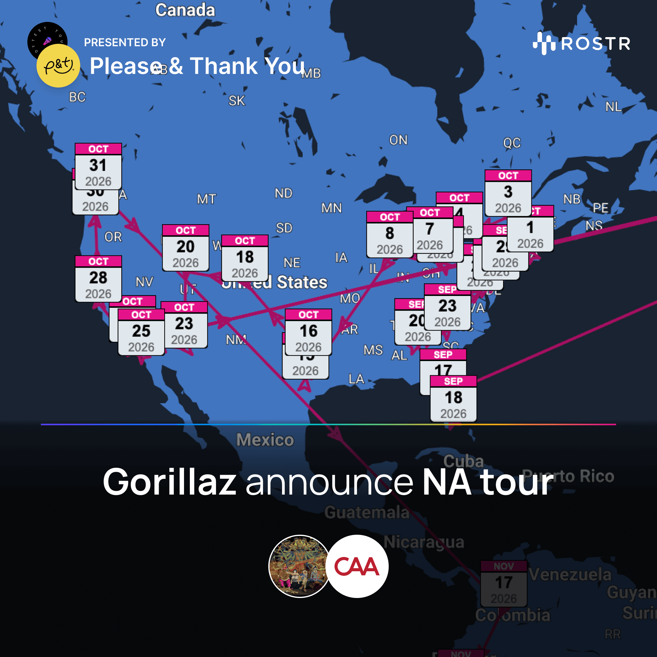 New tour announcements from Gorillaz, underscores, Smerz, Tash Sultana, Charley Crockett