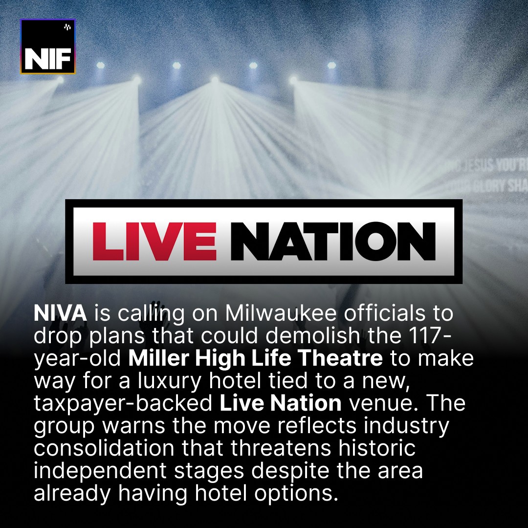 The National Independent Venue Association (NIVA) is calling on Milwaukee officials to abandon plans that could demolish or restrict operations at the 117-year-old Miller High Life Theatre.